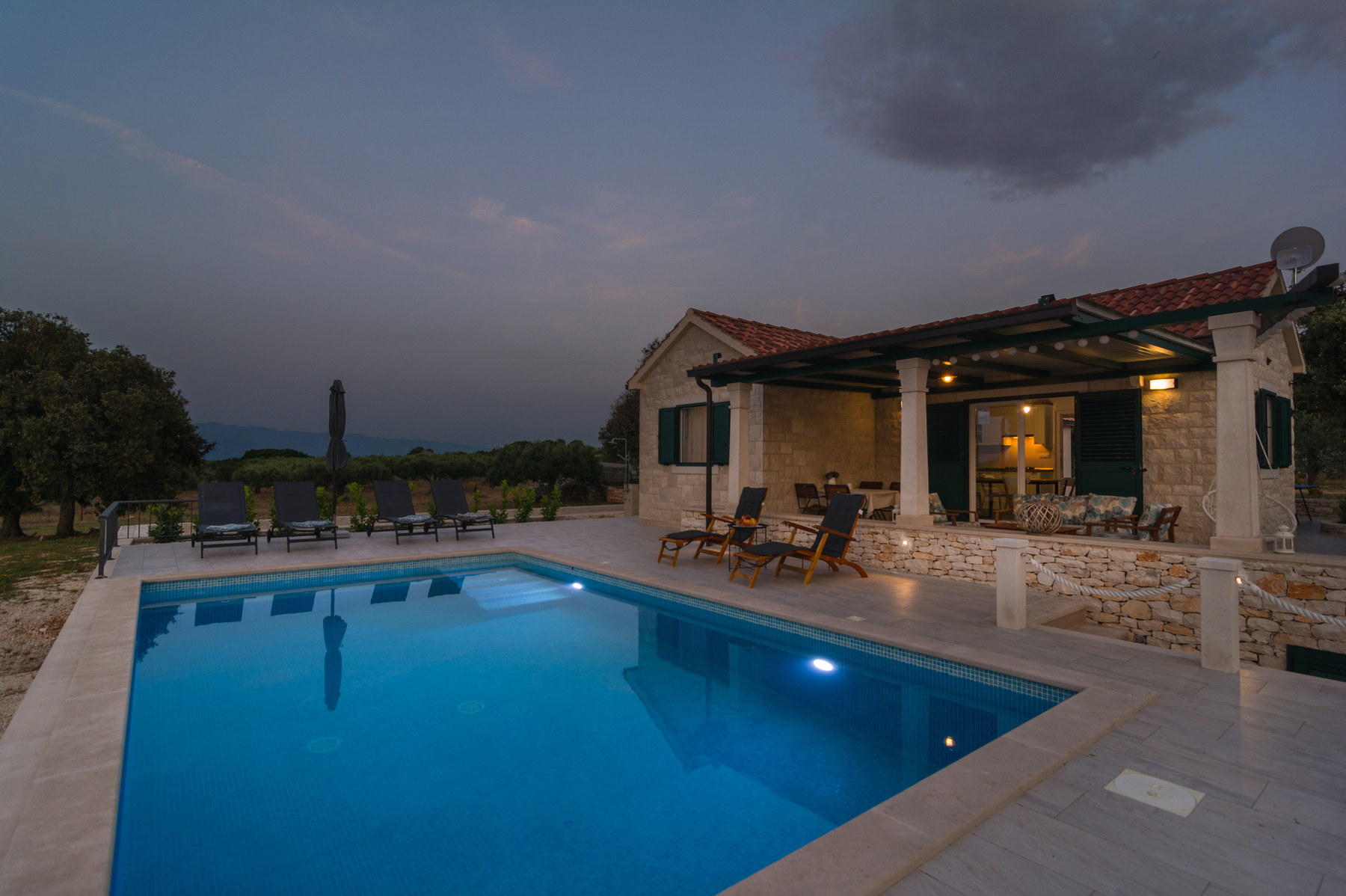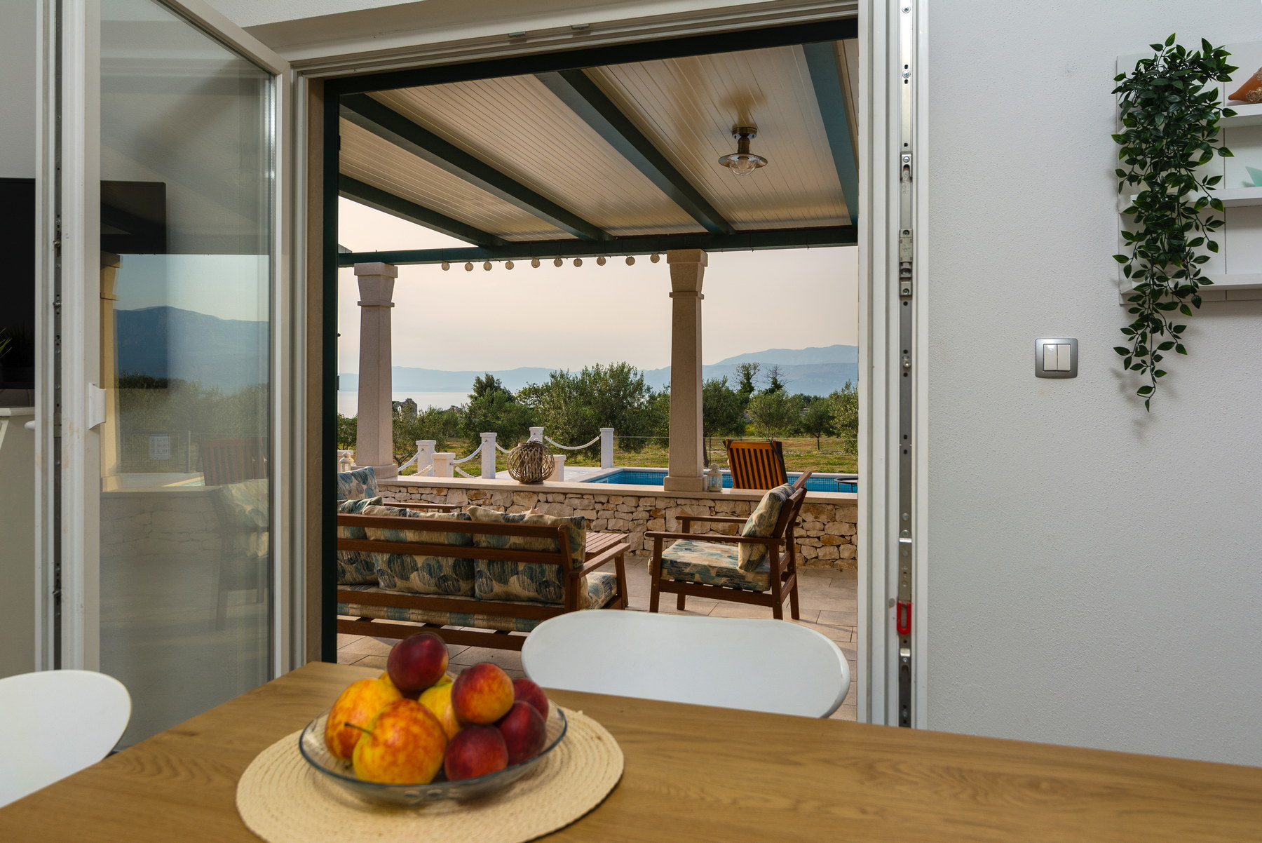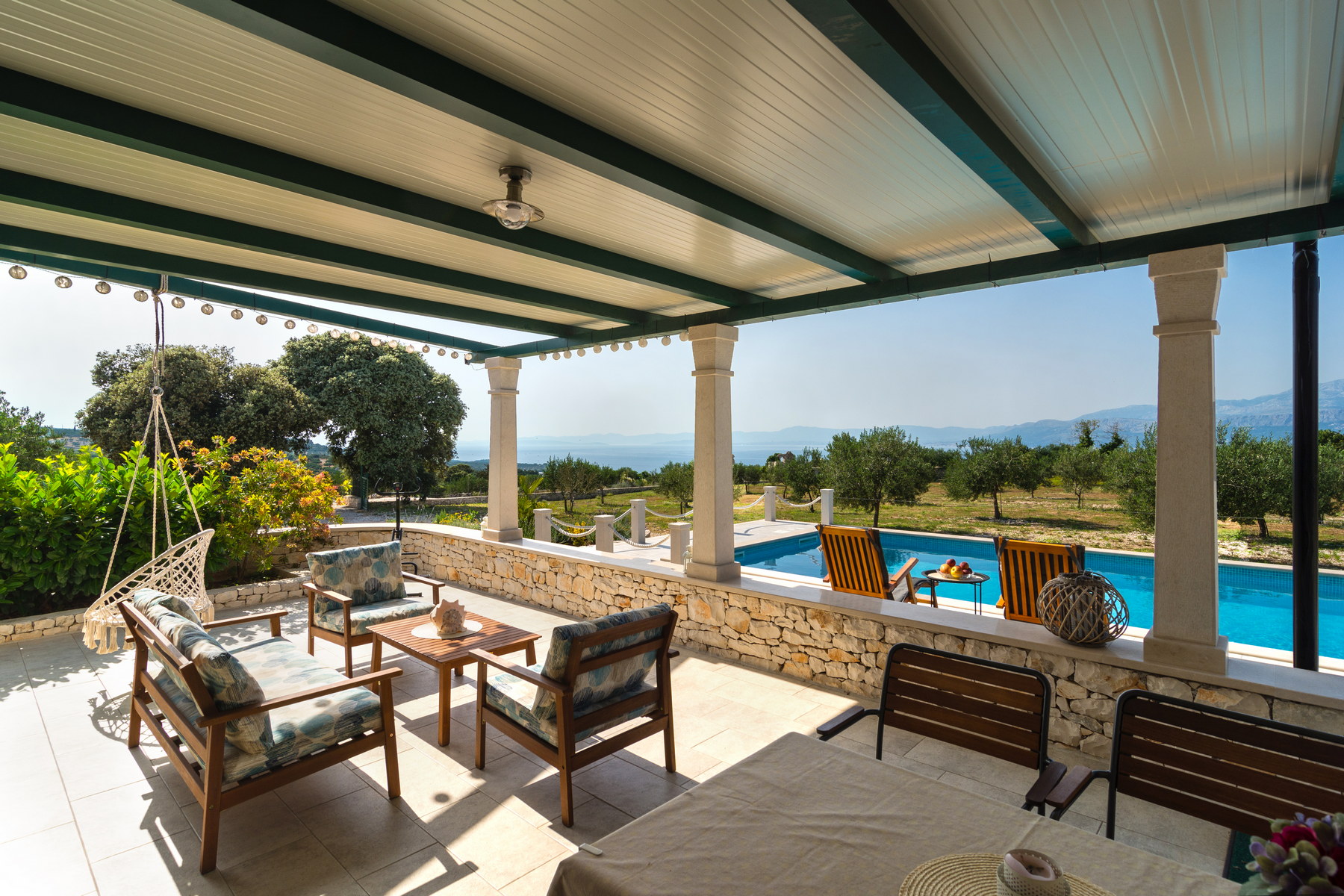 The house is located between the trees that provide great shade, terrace has a beautiful view of the channel Brač and the coast from Split to Omiš.